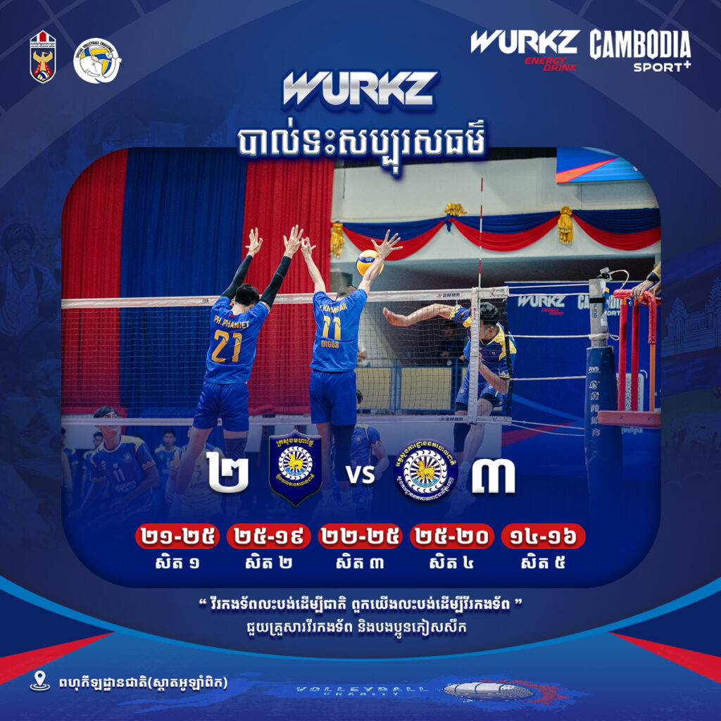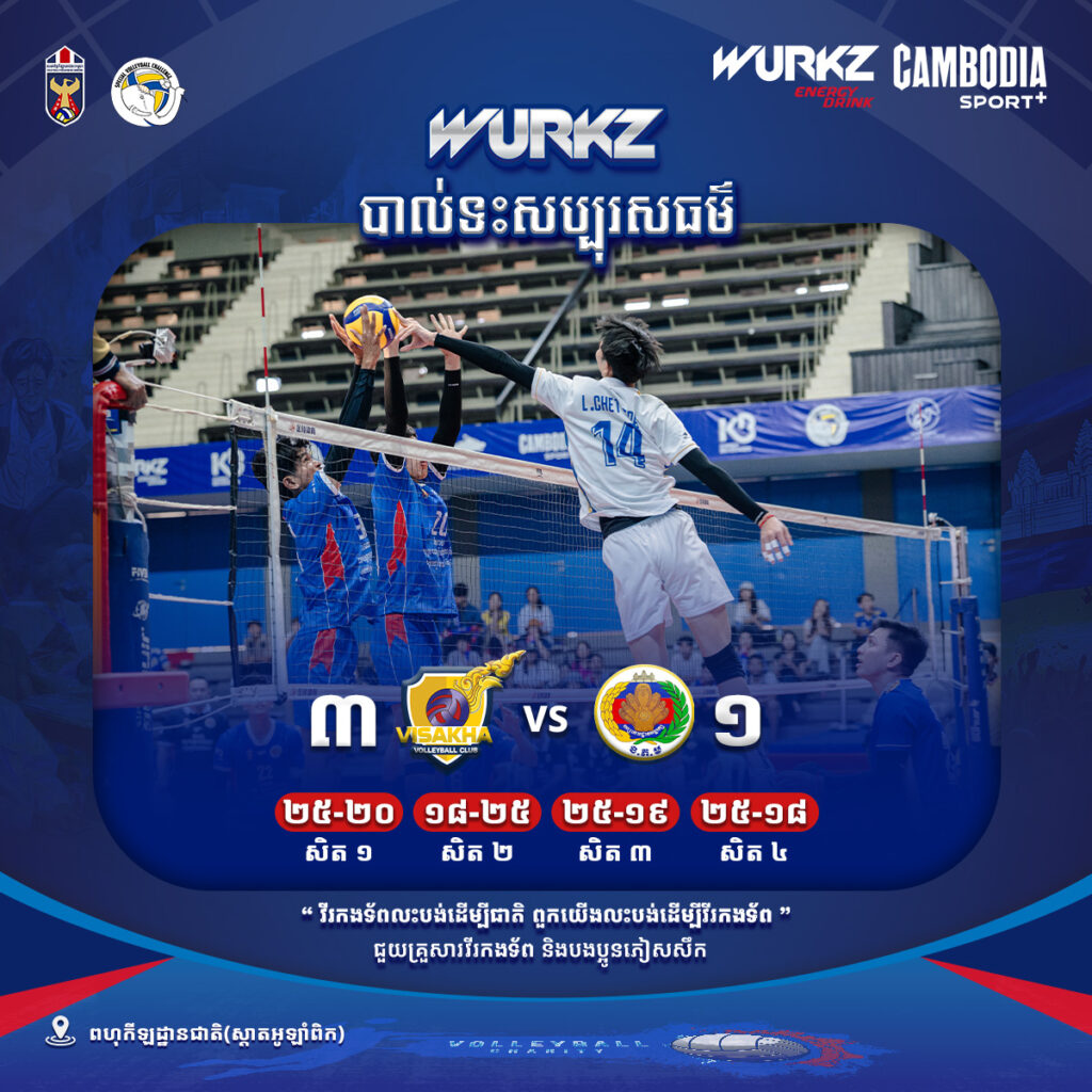 ព្រឹត្តិការណ៍កីឡាបាល់ទះ «WURKZ បាល់ទះសប្បុរសធម៌ » បានរកឃើញម្ចាស់ជើងឯកគឺក្លិបបាល់ទះស្នងការរាជធានីភ្នំពេញ បន្ទាប់ពីយកឈ្នះសមាគមកីឡាបាល់ទះក្រសួងមហាផ្ទៃ នៅវគ្គផ្តាច់ព្រ័ត្រក្នុងលទ្ធផល ៣-២ កាលពីយប់ថ្ងៃទី១៧ ខែមករា ឆ្នាំ២០២៦។