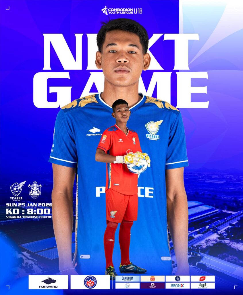 - ថ្ងៃទី២៥ មករា ២០២៦ វេលាម៉ោង ៨:០០នាទីព្រឹក៖ យុវជន អាយុ១៨ឆ្នាំ វិសាខា ប្រកួតជាមួយ យុវជន អាយុ១៨ឆ្នាំ អាយអេសអាយ ដង្កោសែនជ័យ