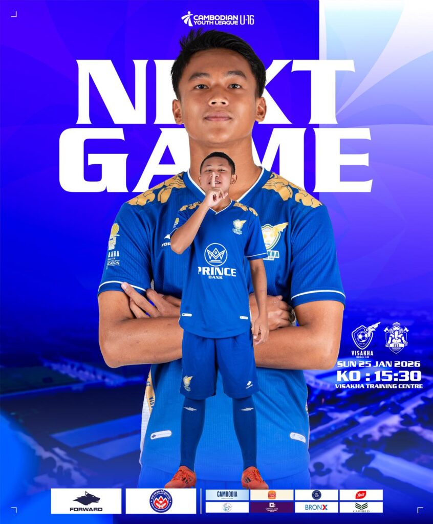 - ថ្ងៃទី២៥ មករា ២០២៦ វេលាម៉ោង ៣:៣០នាទីព្រឹក៖ យុវជន អាយុ១៦ឆ្នាំ វិសាខា ប្រកួតជាមួយ យុវជន អាយុ១៦ឆ្នាំ អាយអេសអាយ ដង្កោសែនជ័យ