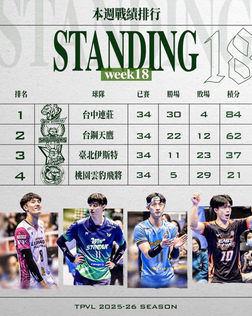 ស្មាត់ធំរបស់ក្រុមជម្រើសជាតិកម្ពុជា កីឡាករ វឿន វាសនា បន្តជួយឱ្យក្រុម Win Streak ឈរកំពូលតារាង នៃពានរង្វាន់លីគបាល់ទះតៃវ៉ាន់ TPVL រដូវកាល ២០២៥-២៦ ក្រោយឆ្លងកាត់៣៤ប្រកួត ឈ្នះ៣០ ចាញ់៤ មាន៨៤ពិន្ទុ។បច្ចុប្បន្ន វឿន វាសនា រកពិន្ទុបានច្រើនជាងគេ៖