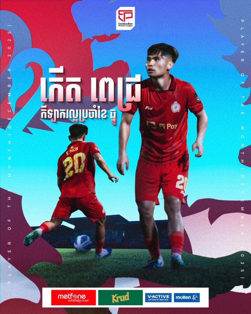 ទី៥) កីឡាករ កើត ពេជ្រ ខ្សែបម្រើរបស់ក្លិបបាល់ទាត់ភ្នំពេញក្រោន ឈ្នះពានកីឡាករល្អប្រចាំខែធ្នូ ឆ្នាំ២០២៥