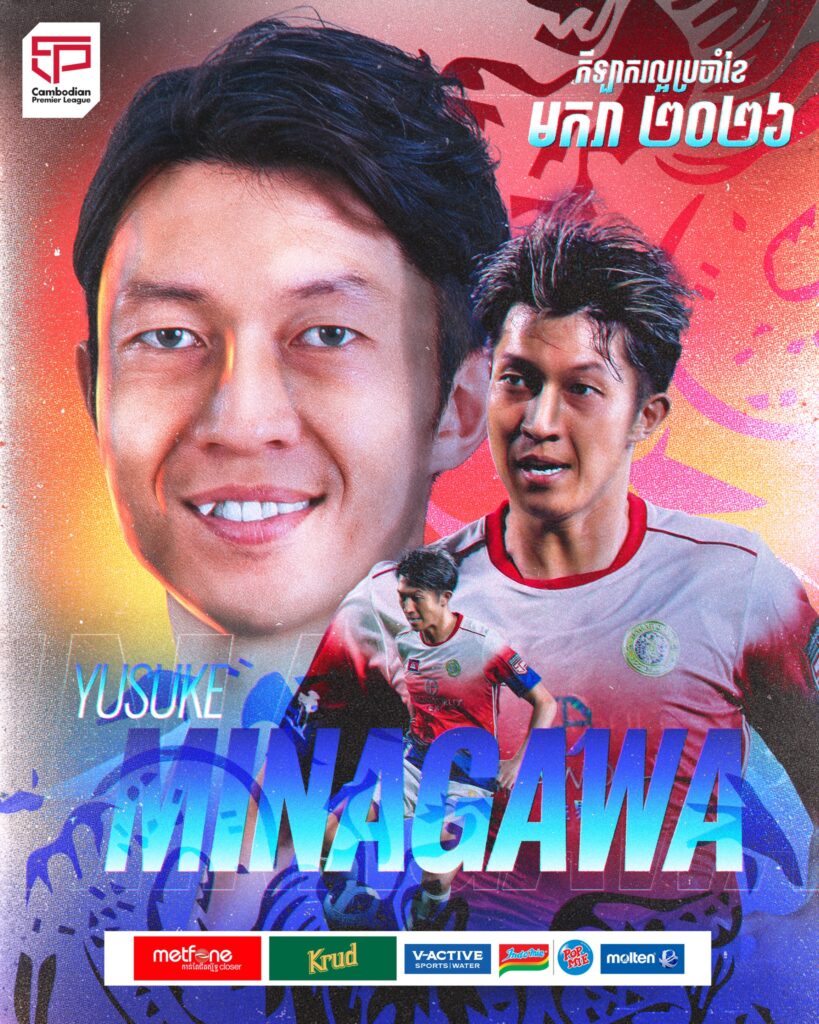 កីឡាករ Minagawa Yusuke ជនជាតិជប៉ុន ខ្សែប្រយុទ្ធ របស់ក្លិបបាល់ទាត់ណាហ្គាវើលដ៍ ឈ្នះពានកីឡាករល្អប្រចាំខែមករា ឆ្នាំ២០២៦ នៃពានរង្វាន់លីគកំពូលកម្ពុជា Cambodian Premier League រដូវកាលឆ្នាំ២០២៥-២៦។