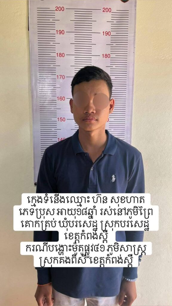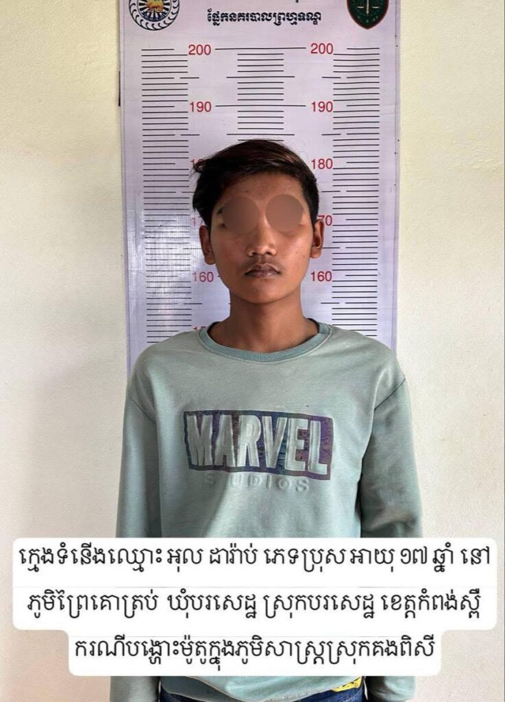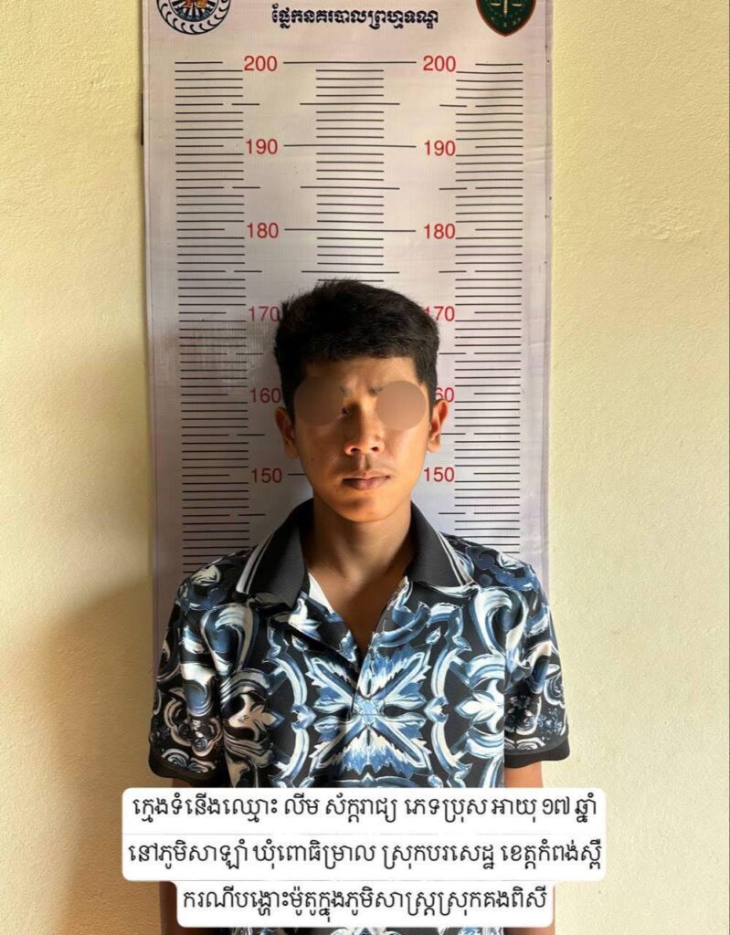 កំពង់ស្ពឺ៖ កម្លាំងនគរបាលខេត្តកំពង់ស្ពឺ បានបង្ក្រាប និងឃាត់ខ្លួនក្រុមក្មេងទំនើងមួយក្រុម ដែលធ្វើសកម្មភាពបង្ហោះម៉ូតូតាមផ្លូវសាធារណៈ រួចថតវីដេអូបង្ហោះចែកចាយតាមបណ្ដាញសង្គម។