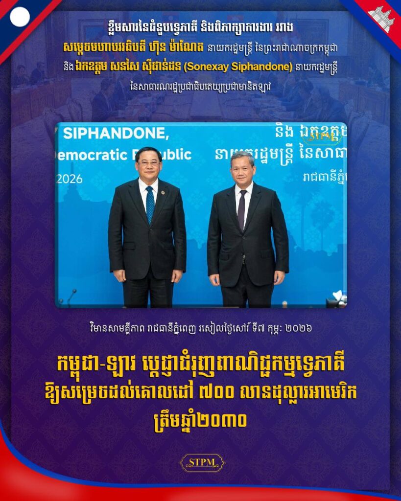 ក្នុងឱកាសនៃកិច្ចប្រជុំរវាងថ្នាក់ដឹកនាំកំពូលនៃគណបក្សកាន់អំណាចនៃប្រទេសទាំងបី កម្ពុជា ឡាវ និងវៀតណាម នៅរាជធានីភ្នំពេញ នាដើមខែកុម្ភៈ ឆ្នាំ២០២៦ នេះ សម្តេចមហាបវរធិបតី ហ៊ុន ម៉ាណែត នាយករដ្ឋមន្ត្រីនៃព្រះរាជាណាចក្រកម្ពុជា បានជួបពិភាក្សាការងារដាច់ដោយឡែកពីគ្នាជាមួយសមភាគីឡាវ និងវៀតណាម ដើម្បីជំរុញទំនាក់ទំនងទ្វេភាគីឱ្យឈានដល់កម្រិតថ្មីមួយទៀត ជាពិសេសលើវិស័យពាណិជ្ជកម្ម និងការតភ្ជាប់ហេដ្ឋារចនាសម្ព័ន្ធដឹកជញ្ជូន។
