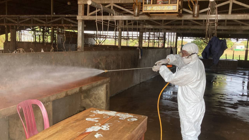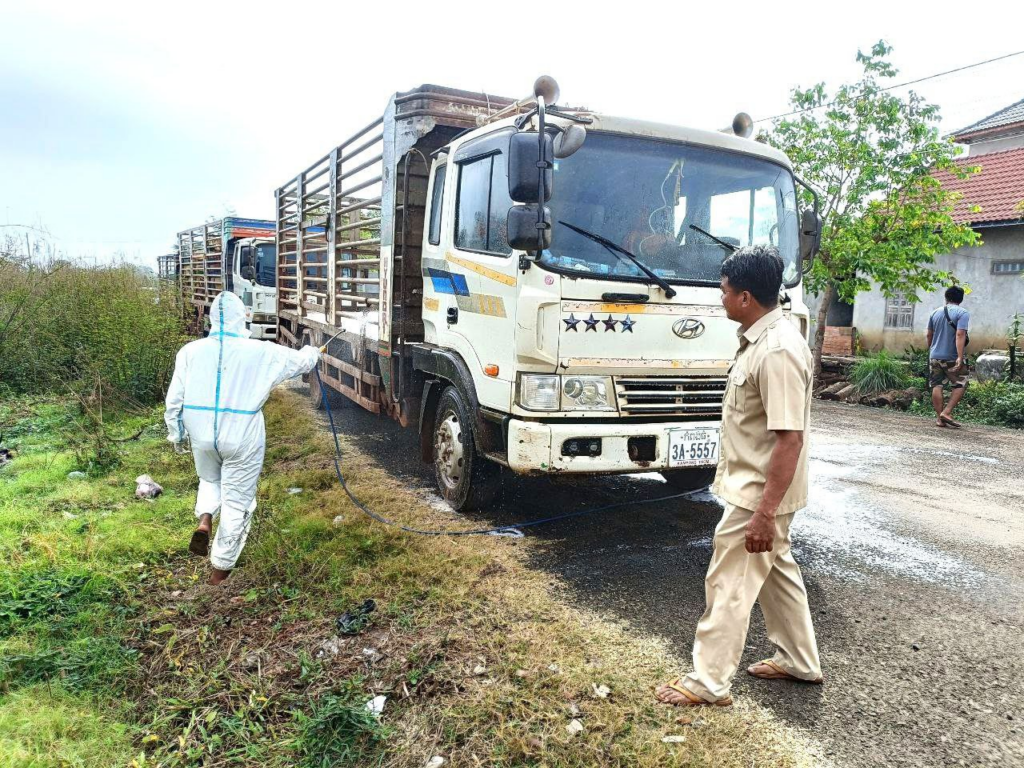 កំពង់ធំ៖ មន្ទីរកសិកម្ម រុក្ខាប្រមាញ់ និងនេសាទខេត្តកំពង់ធំ បានដឹកនាំមន្ត្រីជំនាញចុះអនុវត្តវិធានជីវសុវត្ថិភាព ដោយបាញ់ថ្នាំសម្លាប់មេរោគលើមធ្យោបាយដឹកជញ្ជូនសត្វរស់គ្រប់ប្រភេទ និងតាមសត្តឃាតដ្ឋាន ក្នុងឱកាសបុណ្យចូលឆ្នាំចិន-វៀតណាម ដែលមានតម្រូវការសាច់សត្វកើនឡើង។