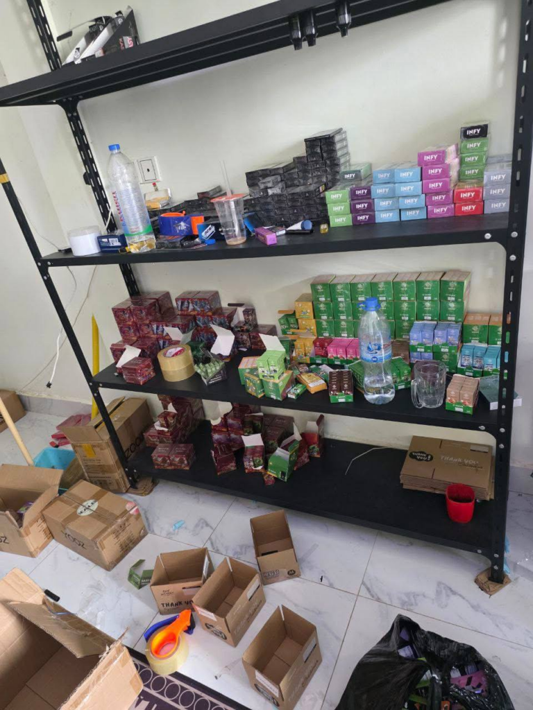ភ្នំពេញ៖ កម្លាំងជំនាញនៃមន្ទីរប្រឆាំងបទល្មើសគ្រឿងញៀន បានចុះបង្រ្កាបទីតាំងស្តុកទុក និងចែកចាយបារីអេឡិចត្រូនិចដោយខុសច្បាប់មួយកន្លែង ស្ថិតនៅផ្ទះលេខ C5 ផ្លូវបេតុង ភូមិស្រុកចេក សង្កាត់ជើងឯក ខណ្ឌដង្កោ រាជធានីភ្នំពេញ ដោយឃាត់ខ្លួនមនុស្ស ៥នាក់ និងដកហូតវត្ថុតាងប្រមាណ ៣០០,០០០ដើម។