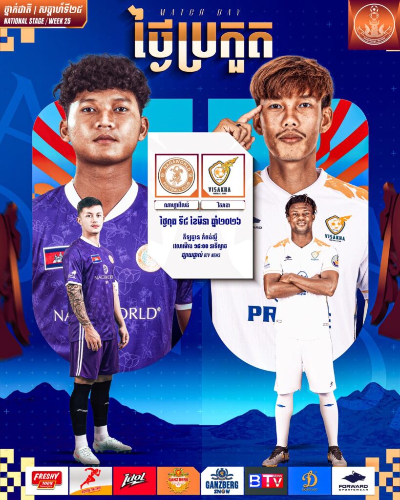 - ៤ មីនា ២០២៦៖ ណាហ្គាវើលដ៍ ប៉ះ វិសាខា នៅកីឡដ្ឋានខេត្តកំពង់ស្ពឺ