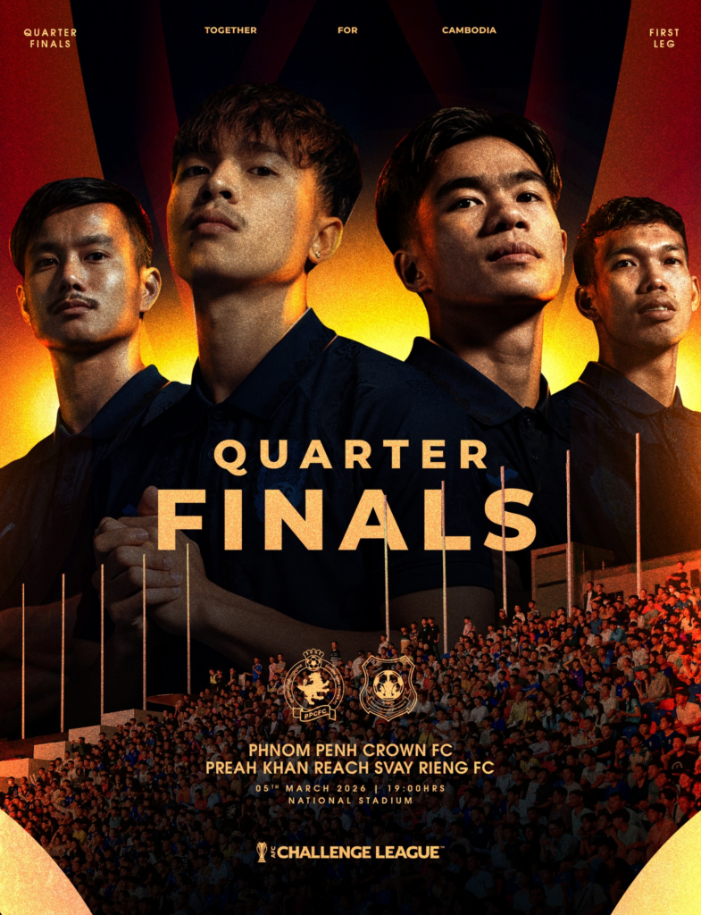 ភ្នំពេញក្រោន នឹងត្រូវបើកទ្វាពហុកីឡដ្ឋានជាតិរាជធានីភ្នំពេញ សម្រាប់ទទួលព្រះខ័នរាជស្វាយរៀង នៃពានរង្វាន់ប្រចាំទ្វីប AFC Challenge League 2025-26 ជើងទី១ វគ្គ៨ក្រុមចុងក្រោយ វេលាម៉ោង ៧:០០នាទីយប់ ថ្ងៃទី៥ ខែមីនា ឆ្នាំ២០២៦ នេះ។