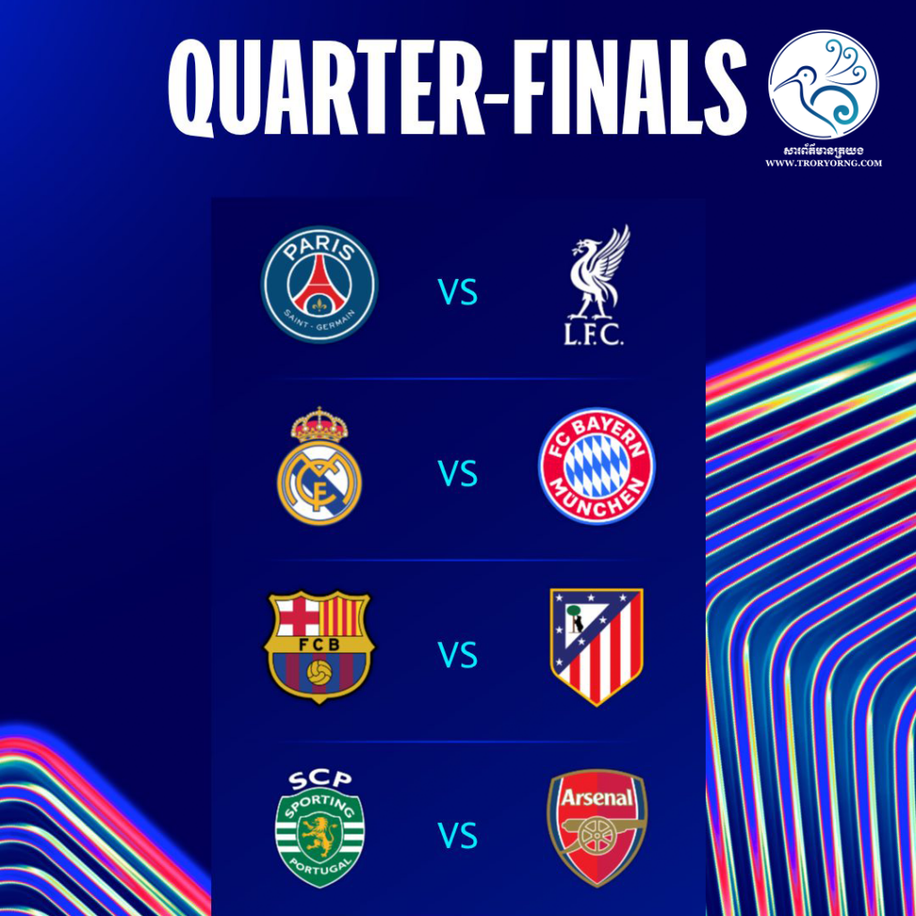 ពានរង្វាន់លំដាប់ទី១ ប្រចាំទ្វីបអឺរ៉ុប UEFA Champions League រដូវកាល ២០២៥-២៦ បានរកឃើញជើងខ្លាំងចំនួន៨ ឡើងទៅវគ្គ៨ក្រុមចុងក្រោយរួមមានដូចជា៖ Real Madrid, Arsenal, PSG, Sporting CP, Liverpool, Bayern Munich, At-Madrid និង Barcelona។