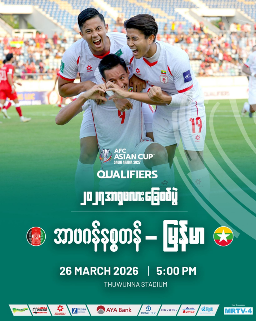 ទី២) មីយ៉ាន់ម៉ា ប៉ះ អាហ្វហ្កានីស្ថាន វគ្គជម្រុះពានរង្វាន់ប្រចាំទ្វីប AFC Asian Cup 2027 នៅថ្ងៃទី២៦ ខែមីនា ២០២៦