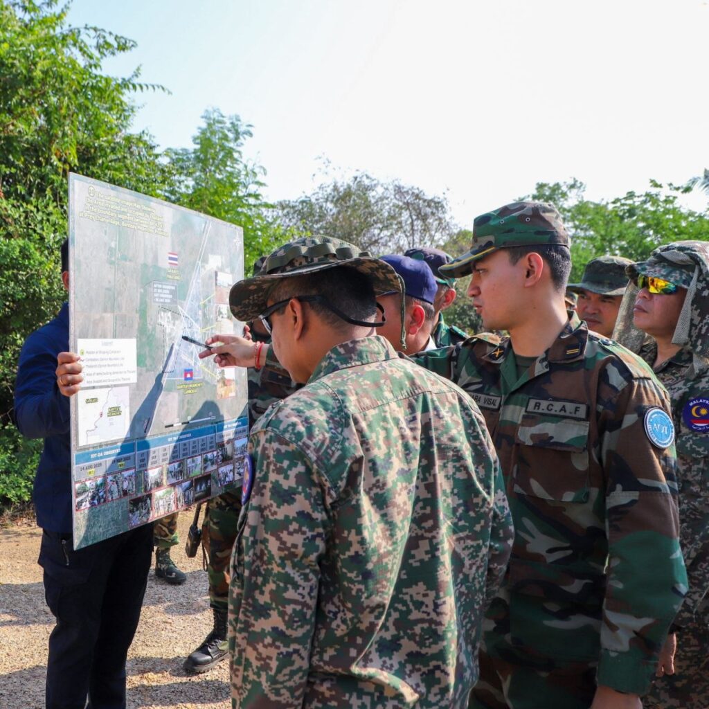 ភ្នំពេញ៖ នៅព្រឹកថ្ងៃទី២៨ ខែមីនា ឆ្នាំ២០២៦ ក្រុមសម្របសម្រួល (CLG) កម្ពុជា បានសម្របសម្រួលឱ្យក្រុមអ្នកសង្កេតការណ៍អាស៊ាន (AOT) ចុះសង្កេតការណ៍ ផ្ទៀងផ្ទាត់ និងរាយការណ៍ស្ថានភាពព្រំដែន នៅតំបន់ច្រកបឹងត្រកួន ខេត្តបន្ទាយមានជ័យ ដើម្បីតាមដានការអនុវត្តវិធានការនានា បន្ទាប់ពីបទឈប់បាញ់ចូលជាធរមាន។