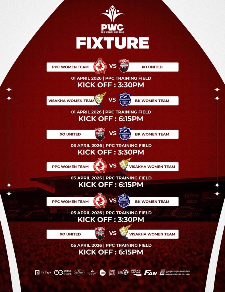 ការប្រកួតពានរង្វាន់ PPC Women Cup ឆ្នាំ២០២៦ នឹងមាន ៤ក្រុមចូលរួម រួមមាន៖ ក្រុមនារីភ្នំពេញក្រោន, បឹងកេត, វិសាខា និង XO United FC ចាប់ផ្តើមពីថ្ងៃទី ០១ ដល់ ០៧ ខែមេសា ឆ្នាំ២០២៦។