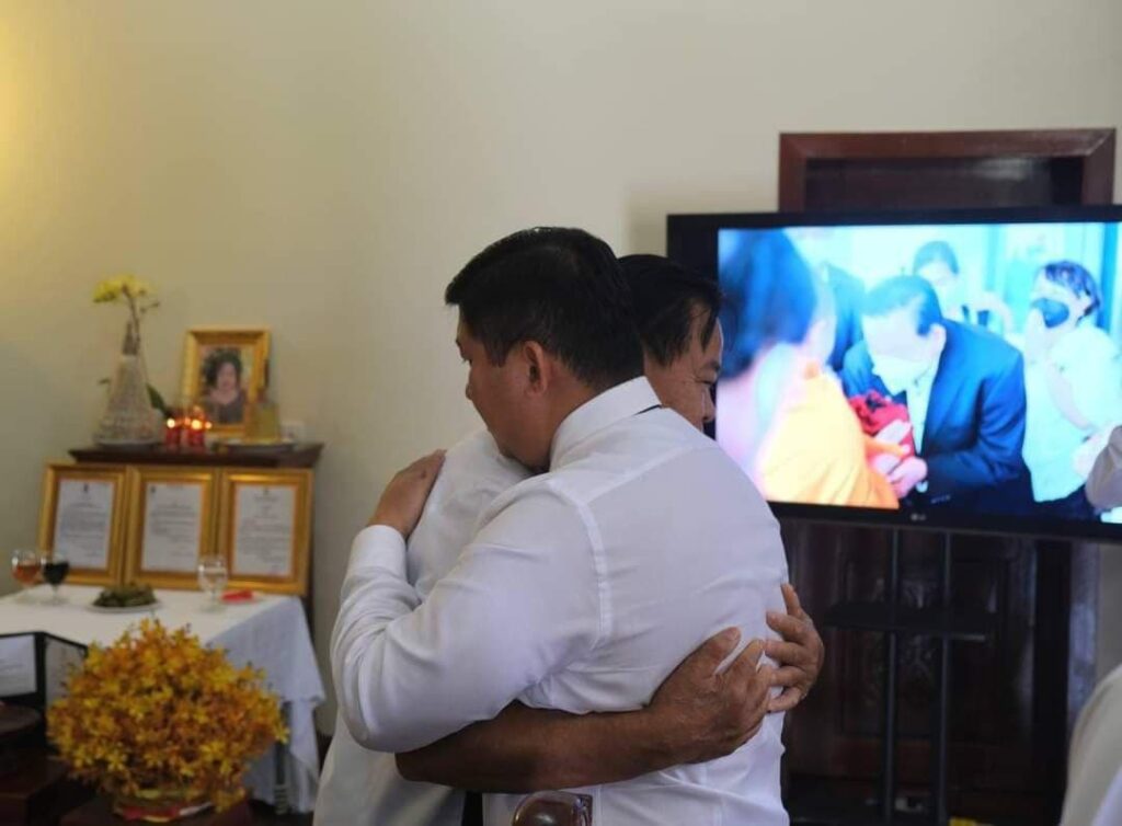 តាមរយៈរូបភាពវិញ អាចឱ្យឃើញបានថាឯកឧត្តម សាយ សំអាល់ ក្នុងទឹកមុខប្រកបដោយមនោសញ្ចេតនាក្រៀមក្រំ បានឱបឯកឧត្តម ម៉ុក ម៉ារ៉េត យ៉ាងណែនដៃនៅចំពោះមុខក្រុមគ្រួសារ និងថ្នាក់ដឹកនាំជាន់ខ្ពស់ជាច្រើនទៀត។