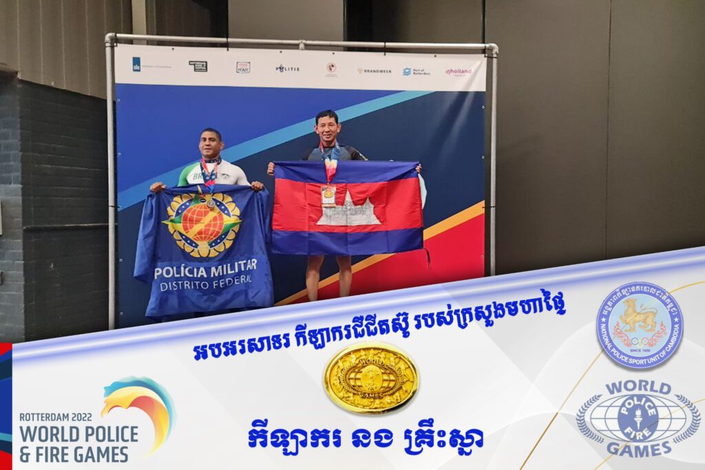 កីឡាករ នង គ្រឹះស្នា ដណ្តើមបានមេដាយមាស១គ្រឿងដែលជាមេដាយមាសដំបូងជូនកម្ពុជា លើវិញ្ញាសាកីឡា Jiu jitsu បុរសអាយុ ៤០ឆ្នាំឡើង ក្នុងប្រភេទទម្ងន់ក្រោម៧៤គីឡូក្រាម ក្នុងព្រឹត្តិការណ៍កីឡានគរបាល និងកងពន្លត់អគ្គិភ័យពិភពលោក លើកទី១៩ ឆ្នាំ២០២២ (The 19th World Police and Fire Games) នៅទីក្រុង Rotterdam ប្រទេសហុល្លង់។