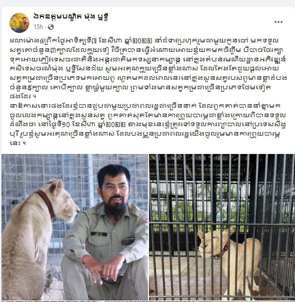 ឧកញ៉ាម៉ុង ឫទ្ធី បានថ្លែងអំណរគុណដល់ឧកញ៉ាទៀ វិចិត្រដែលតែងតែជួយផ្តល់អោយសត្វកម្រជាច្រើនប្រភេទមកអោយពូ រហូតមកដល់ពេលនេះនៅក្នុងសួនសត្វរបស់ពូមានខ្លាដំបងចំនួន៥ក្បាល តោបីក្បាល ខ្លាឃ្មុំមួយក្បាល ព្រមទាំងមានសត្វកម្រជាច្រើនប្រភេទថែមទៀតផងដែរ៕