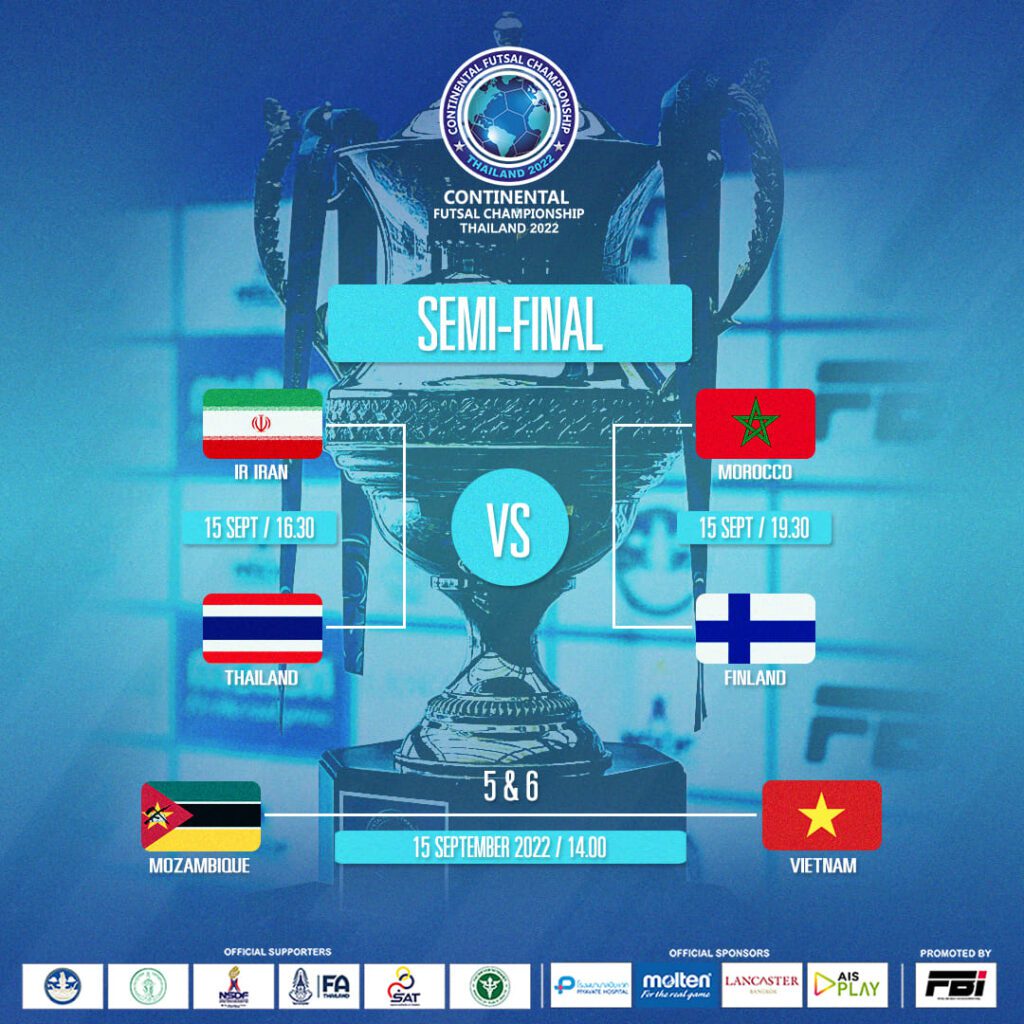 ពានរង្វាន់បាល់ទាត់ហ្វូតសាល Continental Futsal Championship 2022 នៅរាជធានីបាងកក ប្រទេសថៃ ដែលមានក្រុមចូលរួមចំនួន៦ បែងចែកជា២ពូល បានរកឃើញក្រុមឡើងដល់វគ្គពាក់កណ្ដាលផ្ដាច់ព្រ័ត្រ ហើយ។